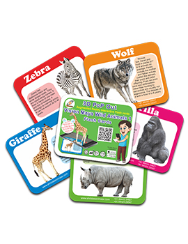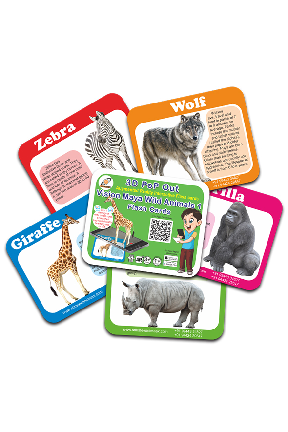 What is Augmented Reality Flash Card?  AR flash card is a flashcard which compiled with augmented reality interactive 3D elements that 3D elements match move with flash card. That means if you rotate the flashcard, 3D elements fix on the flashcard and move with the flash card. Children can touch 3D elements and the 3d elements react according to the children interaction.  This Interactive experience enhances children Learning process. It shrinks the time of children learning process.  Shristee Animaax has our Native Tool for Image Recognition and Match Move. Through the tool, we developed the augmented reality app for scanning the flash cards.  Download and install our VisionMaya app from Google play Store for Android devices and from Apple App Store for Apple devices. Or you can scan the QR code printed in the packages front cover card for downloading the app. Each product pack consists of an Activation card printed with an unique QR code. Activation QR code is unique so once you activated in a device, it can not be activated in any other devices.  After app installation in your device, you can launch the app and it opens your devices camera. You have to scan Activation QR code at the first time of scanning for activating the app.  For activation and downloading 3D models, your device needs an internet data connection. Until clear the App Data or Cache memory, downloaded 3d Animal in your local Storage immediately appears while children scanning the flash card.  Through this App, our Centre can send push notifications to app holders and Technology Centre promotions and advertisements can also run in this app.How to activate App?  Scan anyone of the flashcard in the package.  Very first time, app asks you to scan QR code for activation.  Back side of cover is Activation card you can see activation QR code their.  One activation card is used for one phone only.  If you scan activation QR code in one phone, you cant use it on another phone.